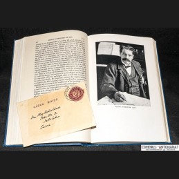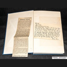 * Innendeckel mit aufgeklebtem Briefumschlag mit einem Zeitungsausschnitt und einer handschriftlichen Karte des Verfassers. - Schwache Gebrauchsspuren