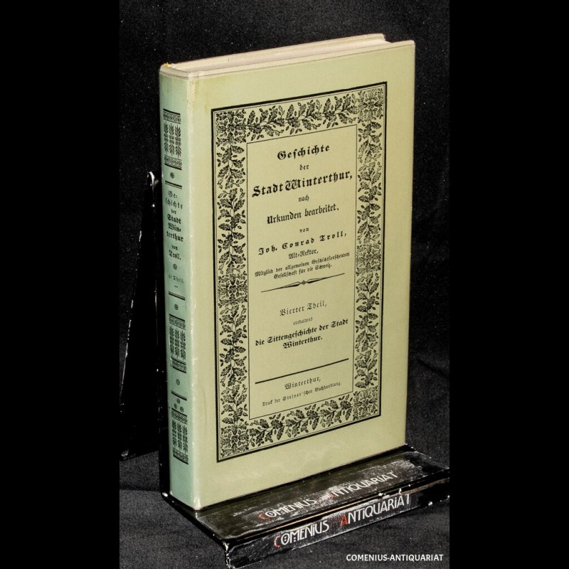 Zur Siebenhundertjahrfeier des Stadtrechtsbriefes von 1264 erscheint auf Veranlassung des Stadtrates dieses Buch im Gemsberg- Verlag Winterthur als unveränderter Neudruck der «Sittengeschichte der Stadt Winterthur» von Johann Conrad Troll, erstmals herausgegeben im Jahre 1844. Die Ausgabe mit dem Anhang samt einem Lebensbild des Rektors 1C. Troll besorgte Hans Kägi.