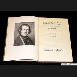 Shakespeares Mädchen und Frauen. Mit Erläuterungen von H. Heine. Hamburg: Hoffmann und Campe, 1925. XXXII, 228 Seiten mit Abbildungen. Blauer Halblederband mit Goldprägung und rotem Rückenschildchen, Farbkopfschnitt. 211 x 143 mm. 396 g