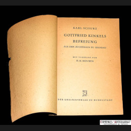 Gottfried Kinkels Befreiung aus dem Zuchthaus zu Spandau. Rudolfstadt: Greifenverlag, [1948]. 79 Seiten mit Abbildungen. Broschiert. Kleinoktav. 178 x 121 mm.