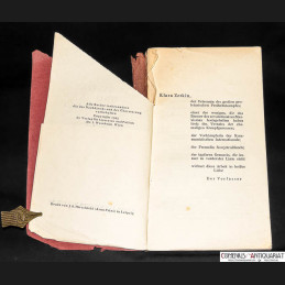 * Die Hinweise auf den Verfasser wurden von dem Buch getilgt; der Teil des Vorderdeckels, Vortitel- und Titelblattes, der vermutlich den Verfassernamen aufwies, wurden weggeschnitten. - Gebräunt und Gebrauchsspuren, Rücken im oberen Drittel einseitig gelöst, die letzte Seite auf den Innendeckel geklebt, neben den erwähnten - vermutlich politisch motivierten - Beschädigungen.