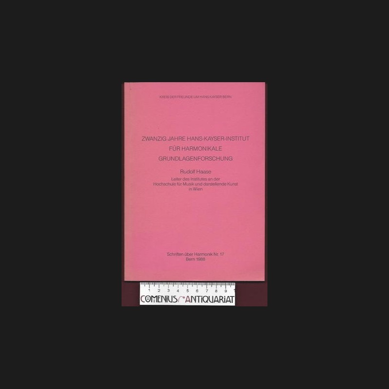 Zwanzig Jahre Hans-Kayser-Institut für Harmonikale Grundlagenforschung. Bern: Kreis d. Freunde um Hans Kayser, 1988. 68 Seiten mit Abbildungen, Literaturverzeichnis und Register. Kartoniert. 95 g
