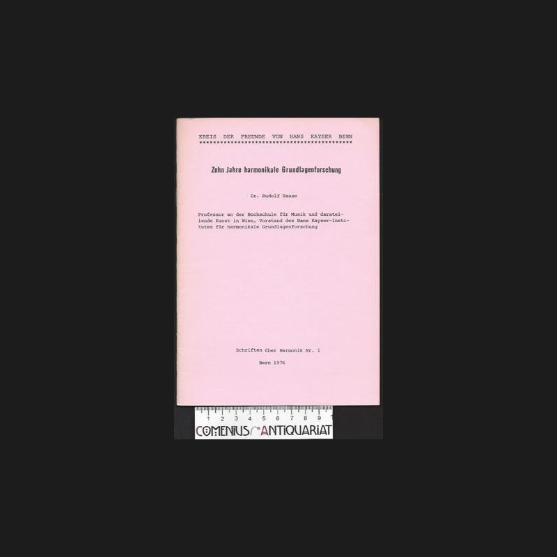 Haase, Rudolf, Zehn Jahre harmonikale Grundlagenforschung. Nachdruck. Bern: Kreis d. Freunde um Hans Kayser, 1983. 16 Seiten mit Literaturverzeichnis. Kartoniert / geheftet. 29 g* Schriften über Harmonik, Nr. 1 Bestell-Nr.139471Haase | Kunsttheorie | Harmonik | Hans Kayser