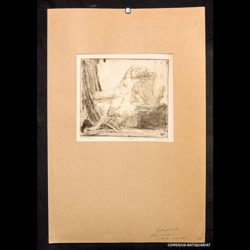 Liebespaar. -: -, 1913. Kaltnadelradierung, Blattmass 215 x 265 mm, Plattenmass ca. 180 x 200 mm. Passepartout aus gefaltetem Halbkarton. 480 x 320 mm.