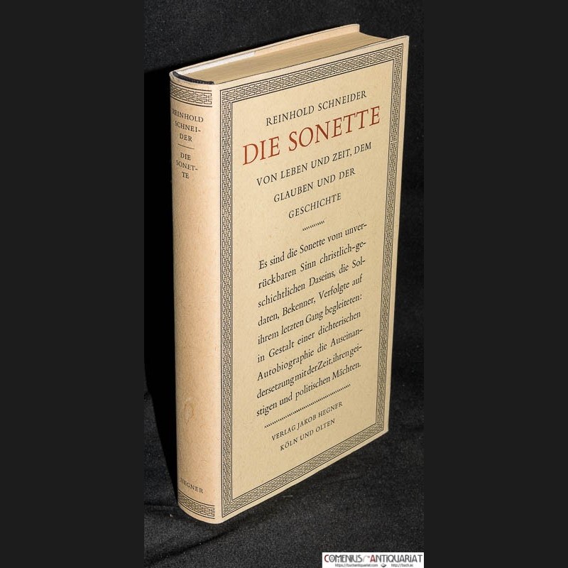 Schneider, Reinhold, Die Sonette von Leben und Zeit, dem Glauben und der Geschichte. Köln, Olten: Hegner, [1954]. 239 Seiten. Leinen mit Schutzumschlag. 263 g* Name auf dem Vorsatzblatt. Bestell-Nr.154530Schneider | Deutsche Literatur