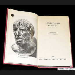 Komödien. Hamburg: Standard-Verlag, 1958. 336 Seiten mit einer Abbildung als Frontispiz und Namenverzeichnis. Leinen mit Farbkopfschnitt. Kleinoktav. 183 x 115 mm.