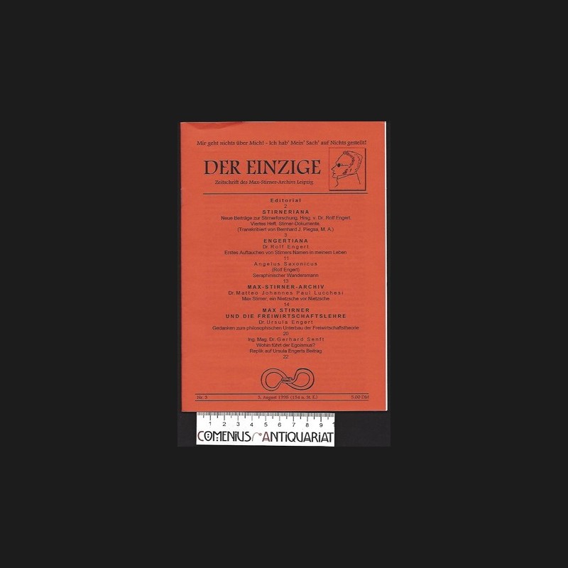 Zeitschrift des Max-Stirner-Archivs Leipzig. Nr. 3. Leipzig: Max-Stirner-Archiv, 1998. 23 Seiten. Broschiert. 31 g