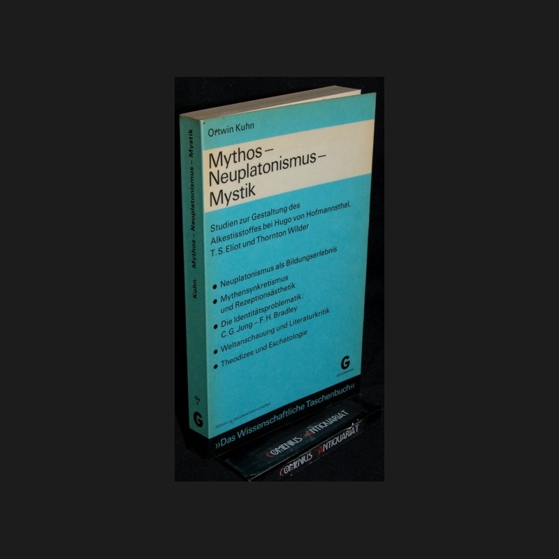 Kuhn, Ortwin, Mythos, Neuplatonismus, Mystik. Studien zur Gestaltung des Alkestisstoffes bei Hugo von Hofmannsthal, T. S. Eliot und Thornton Wilder. München: Goldmann, 1972. 240 Seiten mit Abbildungen und Register. Kartoniert. 322 g* Das wissenschaftliche Taschenbuch, 7. - Gebräunt. Bestell-Nr.143036 | ISBN: 3-442-80007-2Kuhn | Philosophie | Mythen | Mythologie | Alkestis | Literaturwissenschaft allgemein | Hugo von Hofmannsthal | T S Eliot | Thornton Wilder