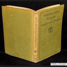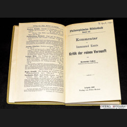 Kommentar zu Immanuel Kants Kritik der reinen Vernunft. Leipzig: Meiner, 1907. IX, 233, 24 Seiten mit Register. Leinen. 197 x 130 mm.