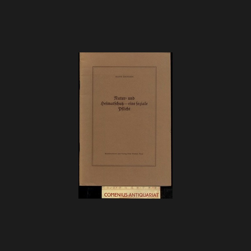Zbinden, Hans, Natur- und Heimatschutz - eine soziale Pflicht. Thun 1947.