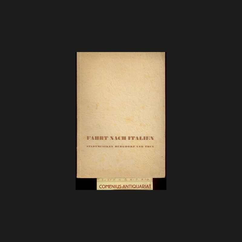 Fahrt nach Italien der Stadtmusiken Burgdorf und Thun, 15. bis 20. September 1938. Reisebericht. Thun: Adolf Schaer, 1938. 40 Seiten Text + Abbildungen auf Tafeln. Kartoniert. 93 g