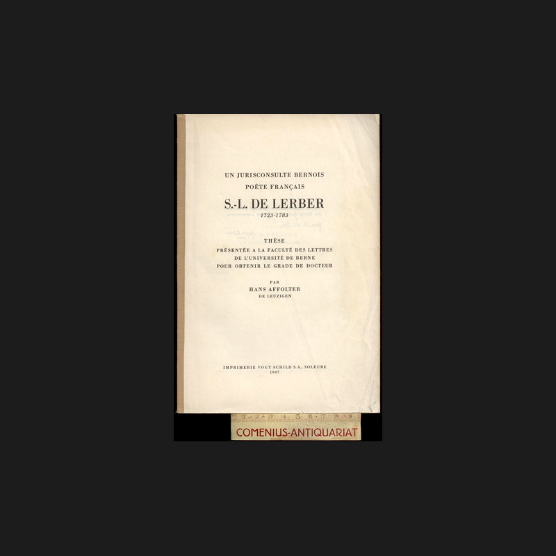 Affolter, Hans, Un jurisconsulte bernois poéte français S.-L. de Lerber 1723 - 1783. Soleure 1947.