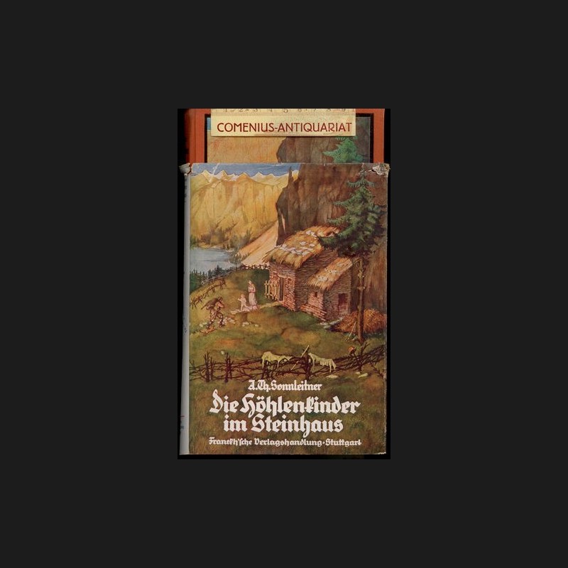 Die Höhlenkinder im Steinhaus. 78. Auflage. Stuttgart: Franckh, 1931. 251 Seiten mit Abbildungen. Fraktursatz. Leinen mit Deckelillustration, Farbkopfschnitt und Schutzumschlag. 528 g