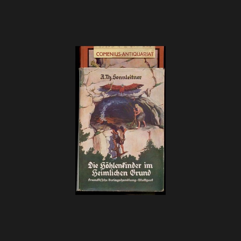 Die Höhlenkinder im Heimlichen Grund. 114. Auflage. Stuttgart: Franckh, 1934. 251 Seiten mit Abbildungen. Fraktursatz. Leinen mit Deckelillustration, Farbkopfschnitt und Schutzumschlag. 497 g