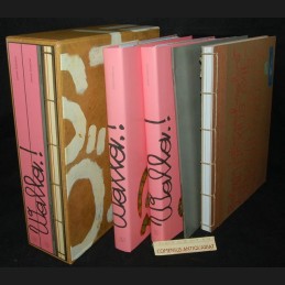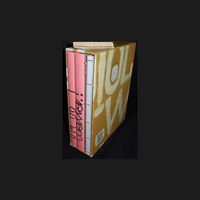 Walla.!. Weltallende. St. Pölten, Salzburg: Residenz-Verlag, 2012. 4 Bände. 2 Pappbände (gebunden) mit Schutzumschlag, 1 Mappe mit Broschur und 1 Band mit Schnur-Blockbindung. 4to. 6023 g