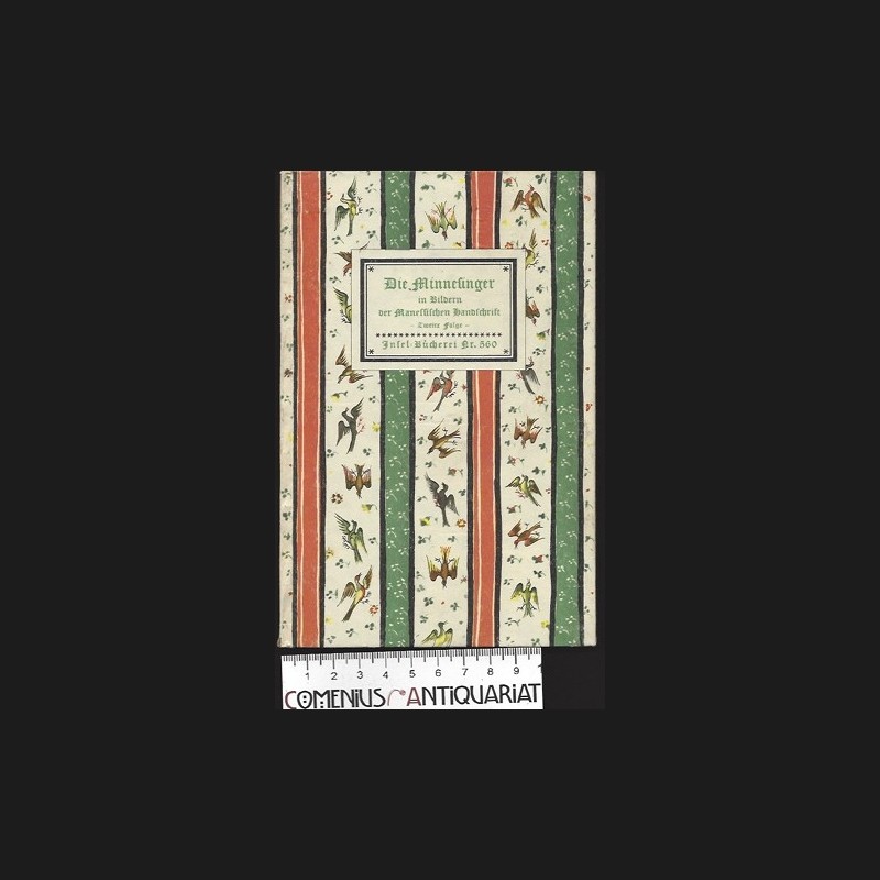 Die Minnesinger in Bildern der Manessischen Handschrift. Zweite Folge. Leipzig: Insel-Verlag, [1945]. 43 Seiten mit 24 Farbtafeln. Fraktursatz. Pappband (gebunden). 124 g