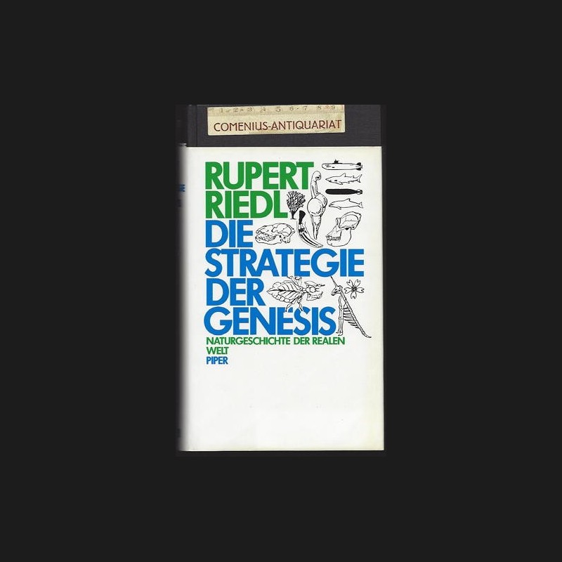 Die Strategie der Genesis. Naturgeschichte der realen Welt. 5. Auflage, Neuausgabe, 12. - 19. Tausend. München, Zürich: Piper, 1986. 381 Seiten mit 106 Zeichnungen, Literaturverzeichnis und Register. Pappband (gebunden) mit Schutzumschlag. 545 g