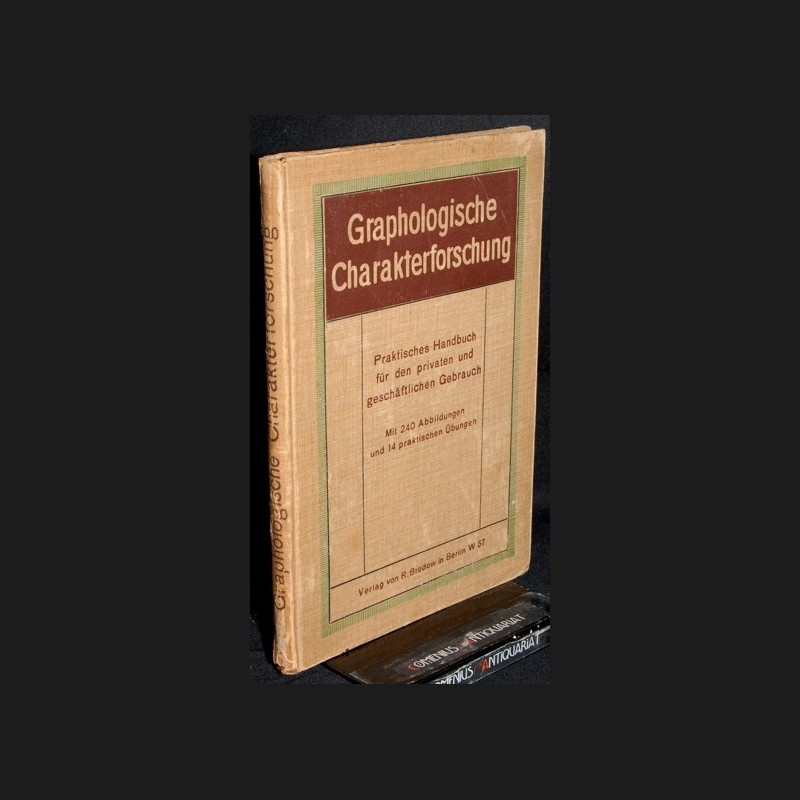 Graphologische Charakterforschung. Praktisches Handbuch für den privaten und geschäftlichen Gebrauch. Berlin: R. Bredow, 1918. 157 Seiten mit 240 Abbildungen und Register. Pappband (gebunden). 305 g