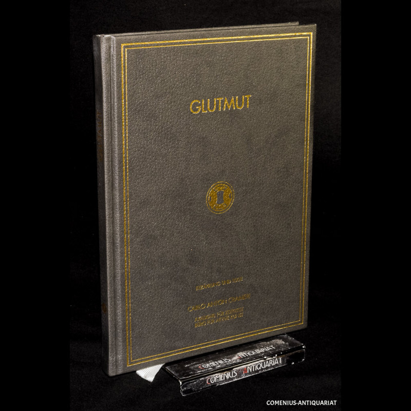 Glutmut. Teil I - XII. Erzählung und Texte. 1. Auflage. Zürich: Golton AG, 2011. 107 Seiten mit Abbildungen. Kunstleder mit Goldprägung und Lesebändchen. 4to. 254 x 184 mm.