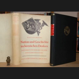 Nation und Geschichte im bernischen Denken. Vom Beitrag Berns zum schweizerischen Geschichts- und Nationalbewusstsein. Bern: Staatlicher Lehrmittelverlag, 1953. 333 Seiten mit Register. Leinen mit Schutzumschlag. Grossoktav. 736 g