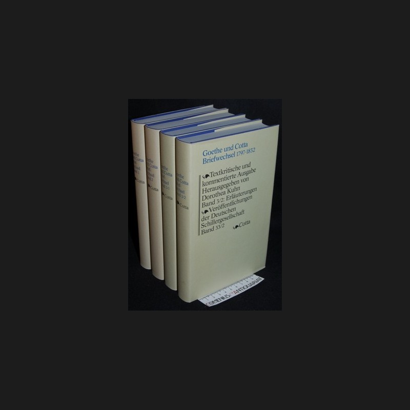 Goethe und Cotta. Briefwechsel. 1797 - 1832. Textkritische und kommentierte Ausgabe in drei Bänden. Stuttgart: Cotta, 1979-1983. 3 in 4 Bänden. Leinen mit Farbkopfschnitt und Schutzumschlag. 2123 g