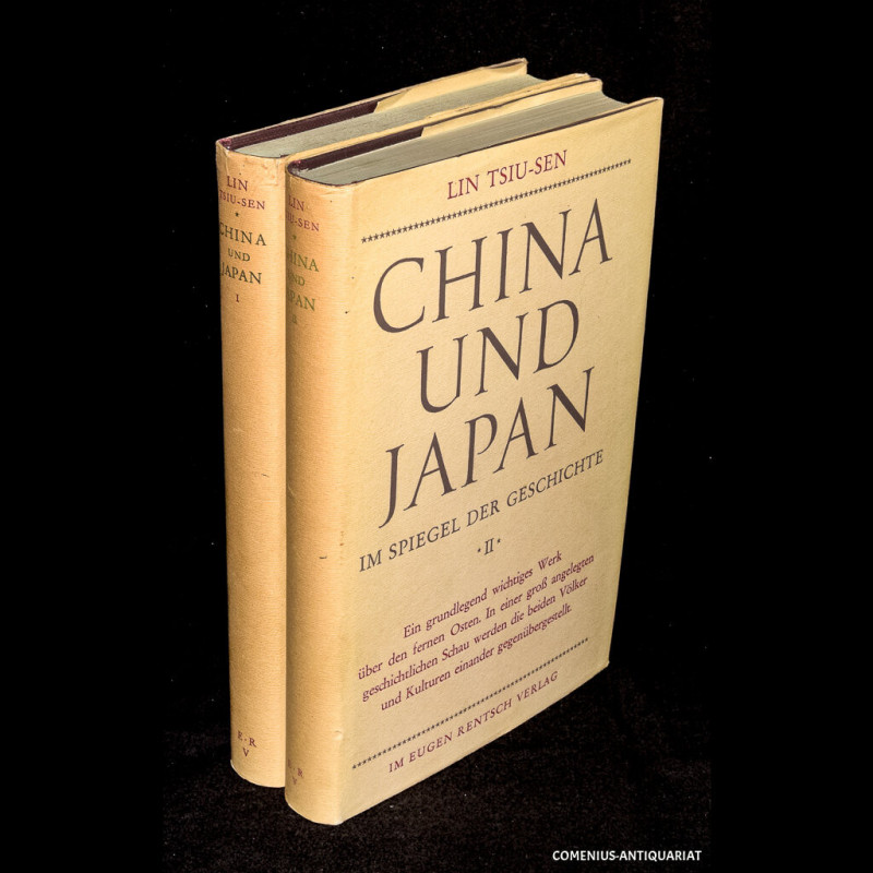China und Japan im Spiegel der Geschichte. Erlenbach, Zürich: Rentsch, 1944-1946. 317 und 383 Seiten mit Register und einer Faltkarte. Leinen mit Farbkopfschnitt und Schutzumschlag. 224 x 148 mm.