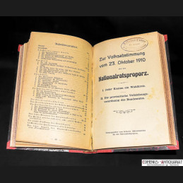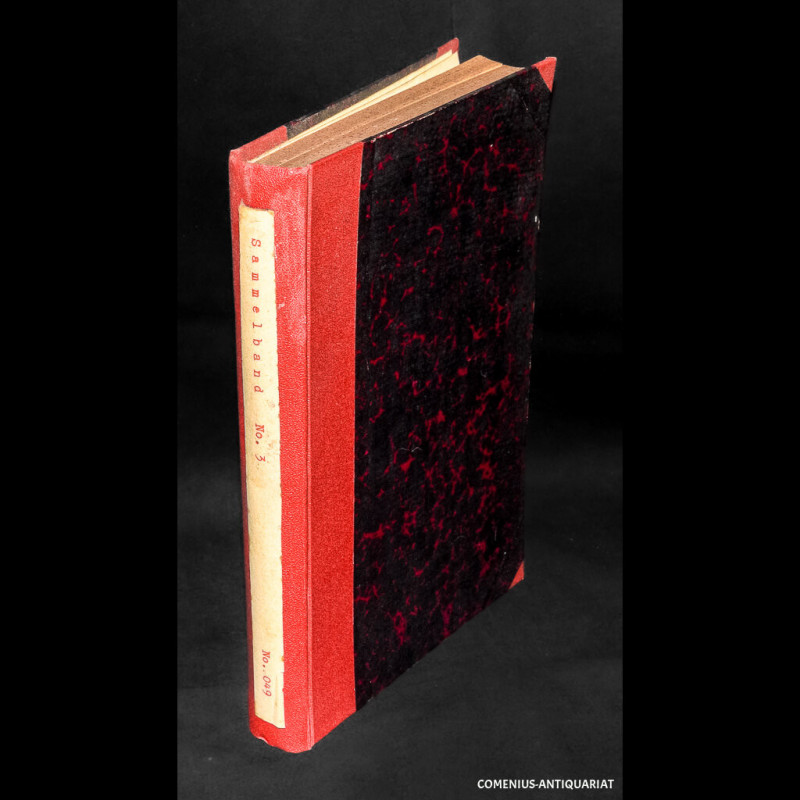* Angebunden: 1. Der Grosskampf im Baseler Holz- und Zimmergewerbe 1923 mit 5 Abbildungen. Herausgegeben vom Bau- und Holzarbeiterverband der Schweiz 1923. 56 Seiten, Fraktursatz. 2. Zur Volksabstimmung vom 23. Oktober 1910 über den Nationalratsproporz. Herausgegeben vom Schweiz. Aktionskommitee für den Nationalratsproporz. Ohne Jahr. 23 Seiten. 3. Vorschriften des Bundes über die Arbeit in den Fabriken . Herausgegeben von der schweizerischen Bundeskanzlei 1919. Bern, Stämpfli. 112 Seiten. - Verschiedene Bibliotheksstempel und eingeklebte Bibliothekszette, stellenweise etwas stockfleckig. Deckel leicht konkav verzogen.