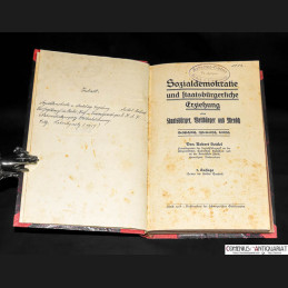 Sozialdemokratie und staatsbürgerliche Erziehung oder Staatsbürger, Weltbürger und Mensch. Geschichtlich, systematisch, kritisch. 3. Auflage. Zürich: Buchdruckerei des Schweizerischen Grütlivereins, 1918. XVI, 160 Seiten, Fraktursatz. Privater Halbleinenband mit aufgeklebtem Rückentitel "Sammelband No. 3 No. 49". 204 x 137 mm. 448 g