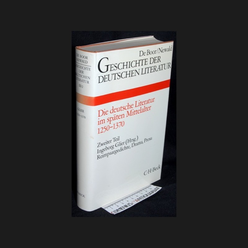 Die deutsche Literatur im späten Mittelalter 1250-1370. Zweiter Teil: Reimpaargedichte, Drama, Prosa. München: Beck, 1997. XIII, 532 Seiten mit Literaturverzeichnis und Register. Leinen mit Schutzumschlag. 845 g