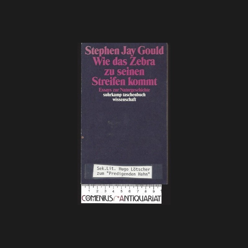 Wie das Zebra zu einem Streifen kommt. Essays zur Naturgeschichte. 1. Auflage. Frankfurt am Main: Suhrkamp, 1991. 399 Seiten mit Abbildungen und Register. Kartoniert. Kleinoktav. 215 g