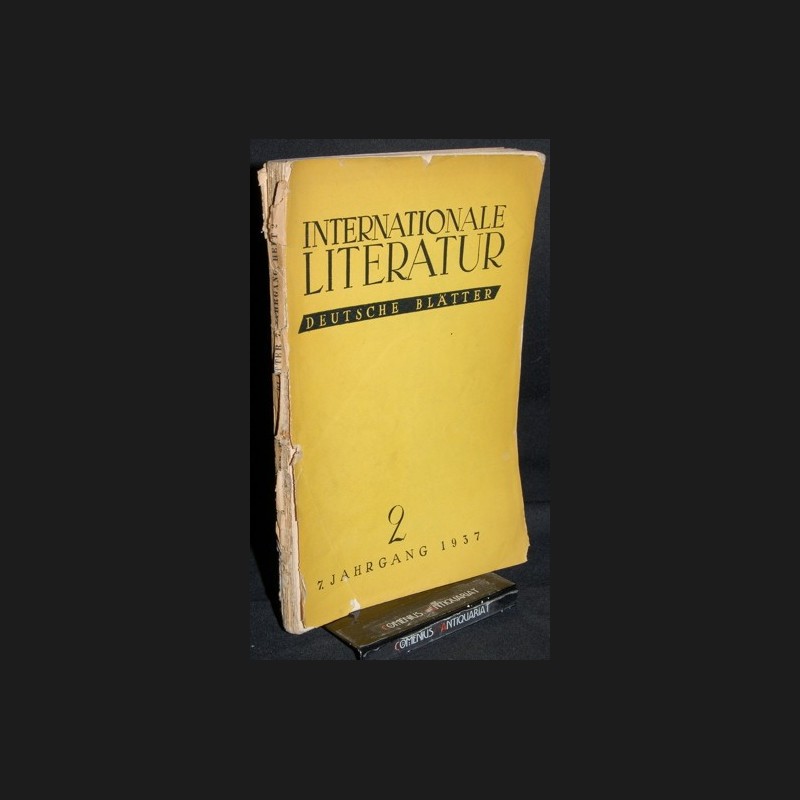 * Beiträge von Alfred Kurella, Heinrich Mann, Friedrich Wolf, Bertolt Brecht, Lion Feuchtwanger u.a. - Gebrauchsspuren, gebräunt und knitterig, vorderes Deckblatt fast lose, Papierbezug des Rückens mit Fehlstellen, hinteres Deckblatt mit Stempel, untere Ecke mit Feuchtigkeitsrand.